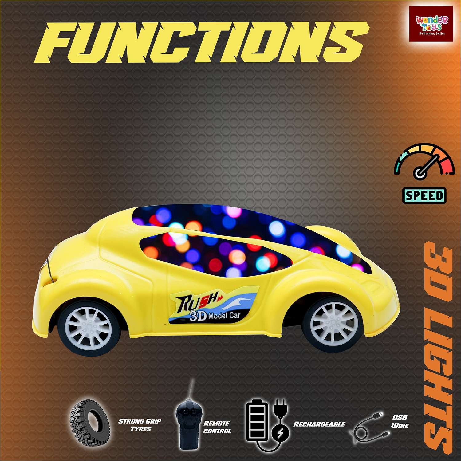 3D Model Car Yellow 2 Functions 3D Rechargeable LED Remote Control Car – Wonder Toys - 769-ABCD