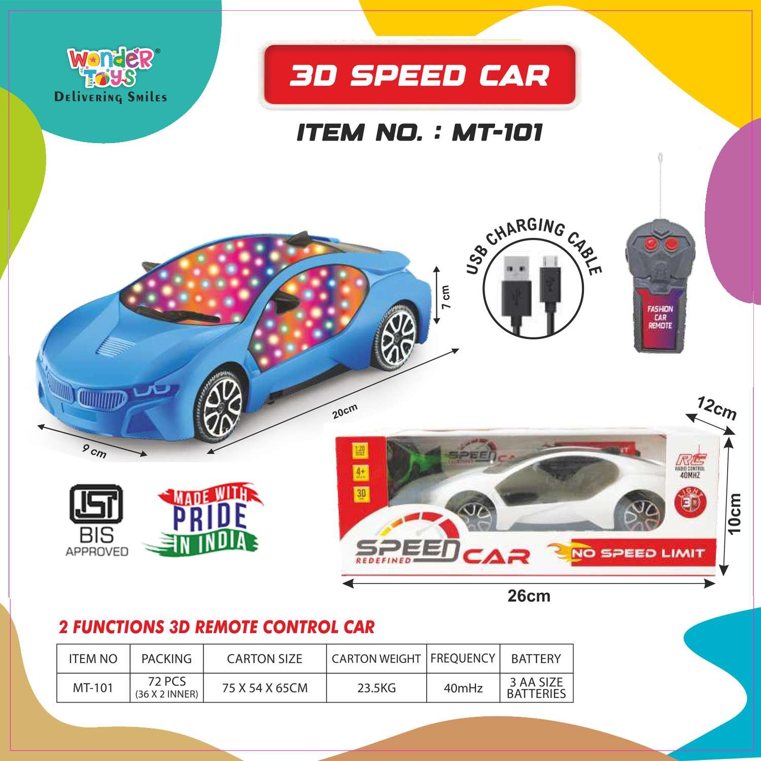 3D Speed Car 2 Functions Remote Control Car – Rechargeable Mini Remote Control Cars - Wonder Toys - MT-101