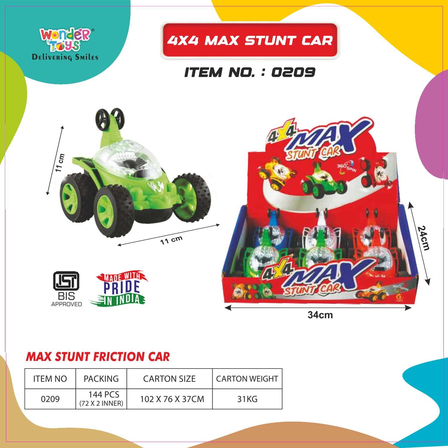 Delivered on 19 December at .Shop the best Drift Remote Control Car! Order now for high-speed fun and ultimate stunts. Buy today and experience RC thrill! The 4x4 Max Stunt Car by Wonder Toys delivers a thrilling RC car experience for children aged 6 and above. Designed with 2-function 3D control, the car allows forward/backward movement and left/right steering, enabling kids to perform stunts, spins, and jumps. Its durable construction, including reinforced body and sturdy wheels, ensures it can handle indoor and outdoor racing on various surfaces.