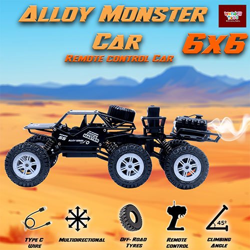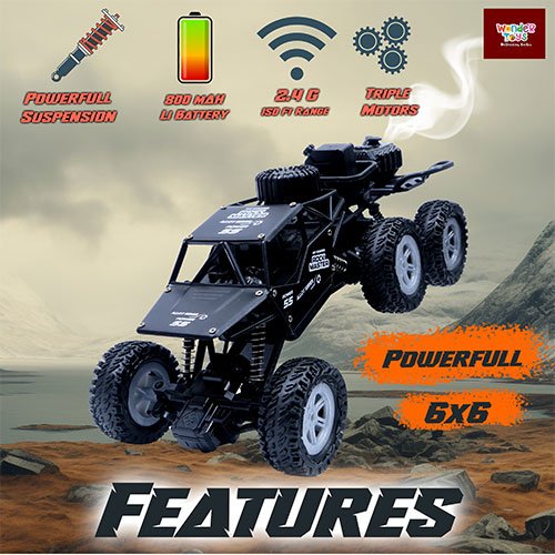 Buy Alloy Black Monster Car | 6x6 Rock Crawler | Smoke Spray & Type-C Charger - Wonder Toys