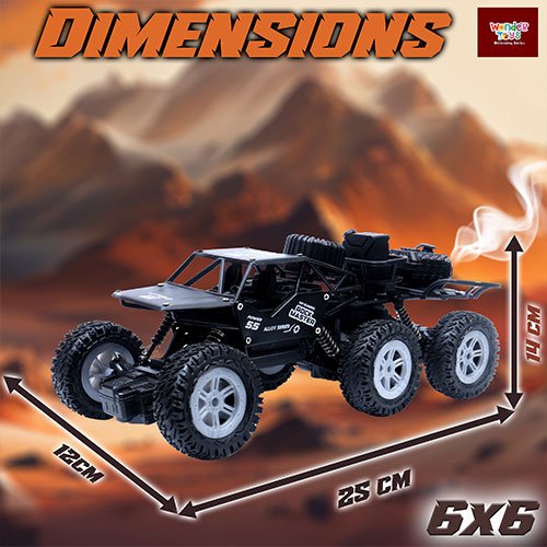 Wonder Toys Alloy Black Monster Car 6x6 Rock Crawler | Smoke Spray | Type-C Charging - MT-8411