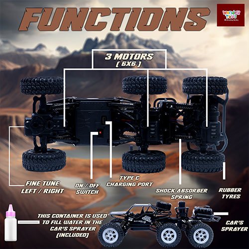 Delivered on 14 February at .6x6 Rock Crawler with 5 Functions Alloy Monster Black Car With Smoke Spray (Type-C Charging) – Wonder Toys