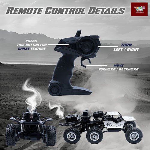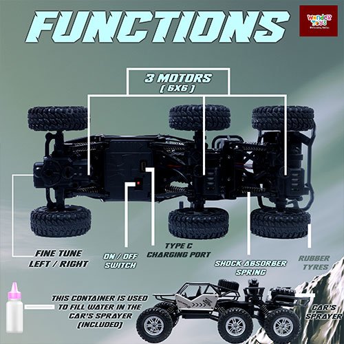 Wonder Toys Off Road Alloy Monster Silver Car with Smoke Spray (Type-C Charging) - 6x6 Rock Crawler with 5 Functions - MT-8411
