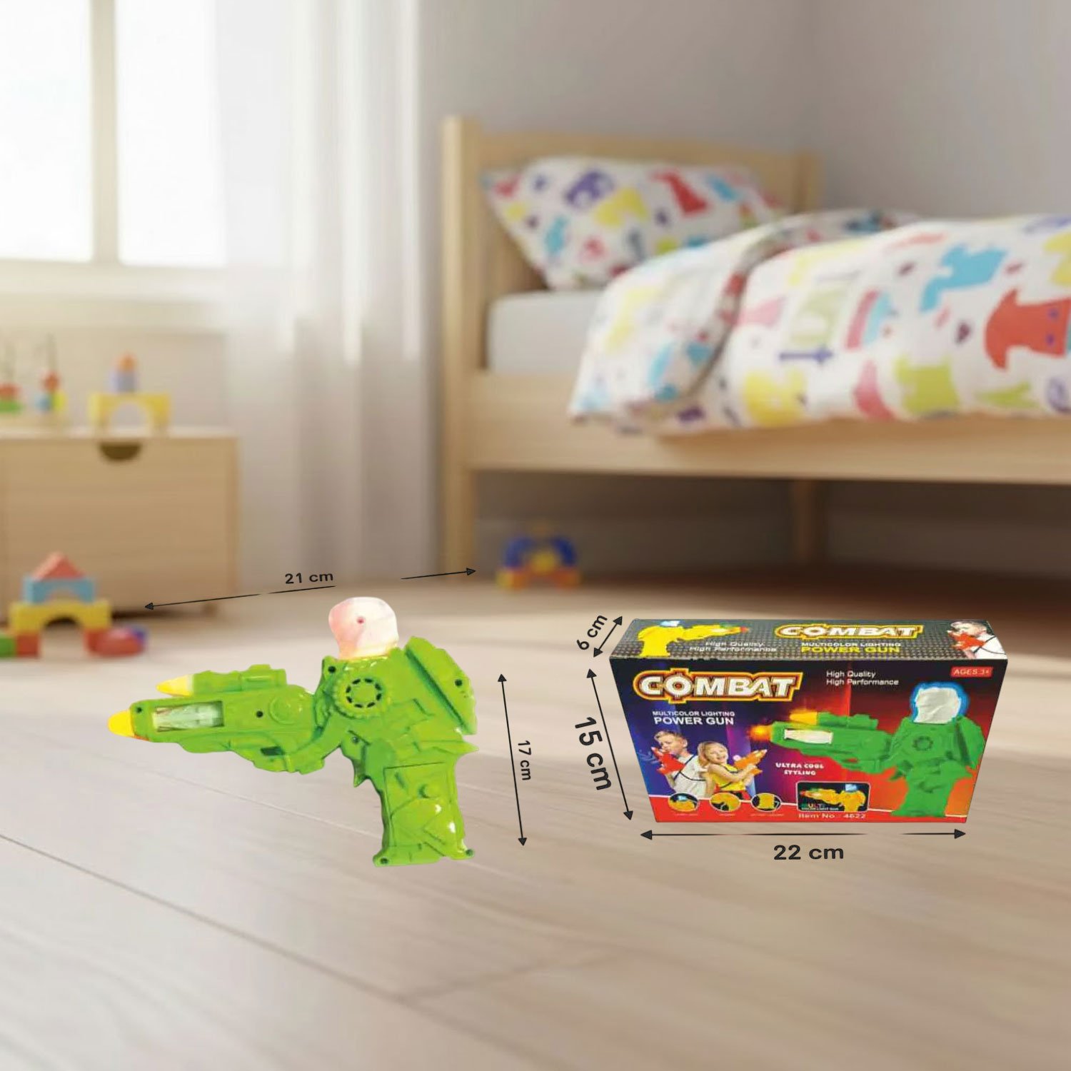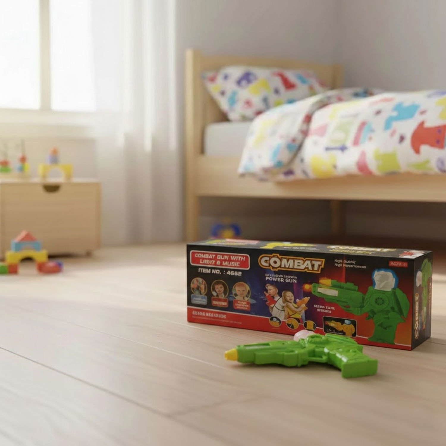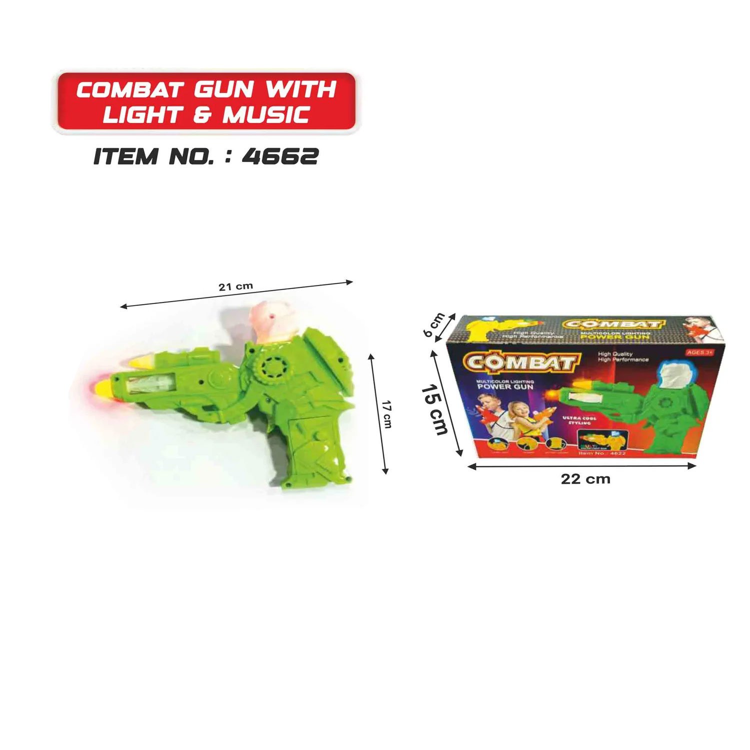 The Combat Gun with Light & Music encourages imaginative role-play, enhancing children’s creativity and problem-solving skills. Whether your child is staging exciting battles or simply enjoying solo adventures, the combination of music and lights makes playtime more interactive and engaging. Lightweight and easy to handle, this toy is perfect for kids aged 3 and above.