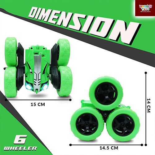 Remote Control Stunt Car 6 Wheels (Green ) -Wonder Toys - MT-1624