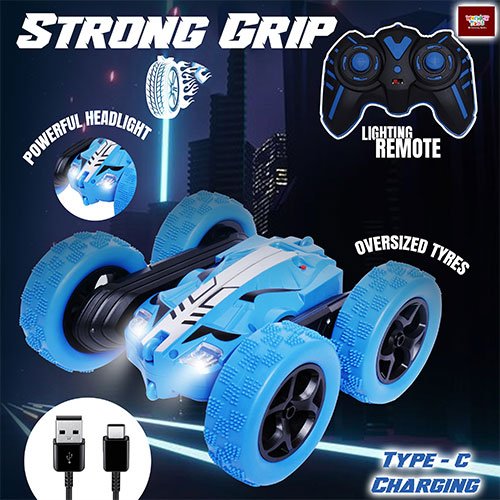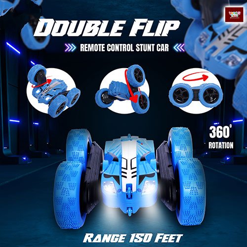 Rolling Stunt Car 4 Wheels ( Blue ) – Double Flip Stunt Car for Kids | Wonder Toys - MT-0624