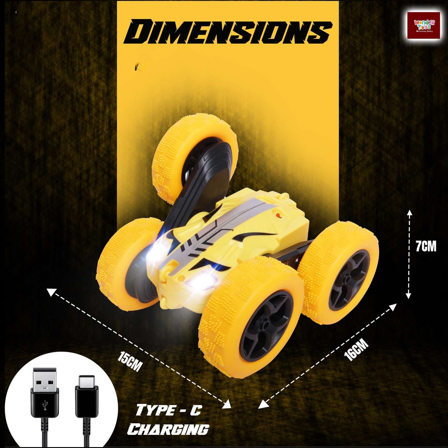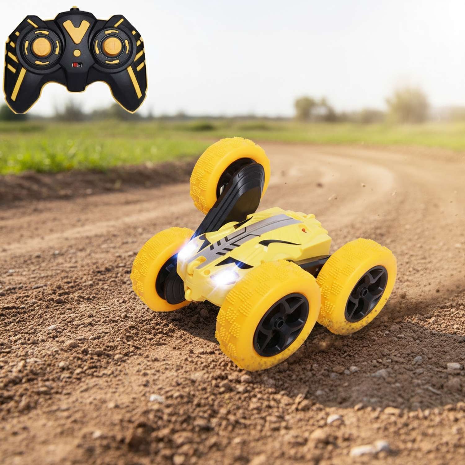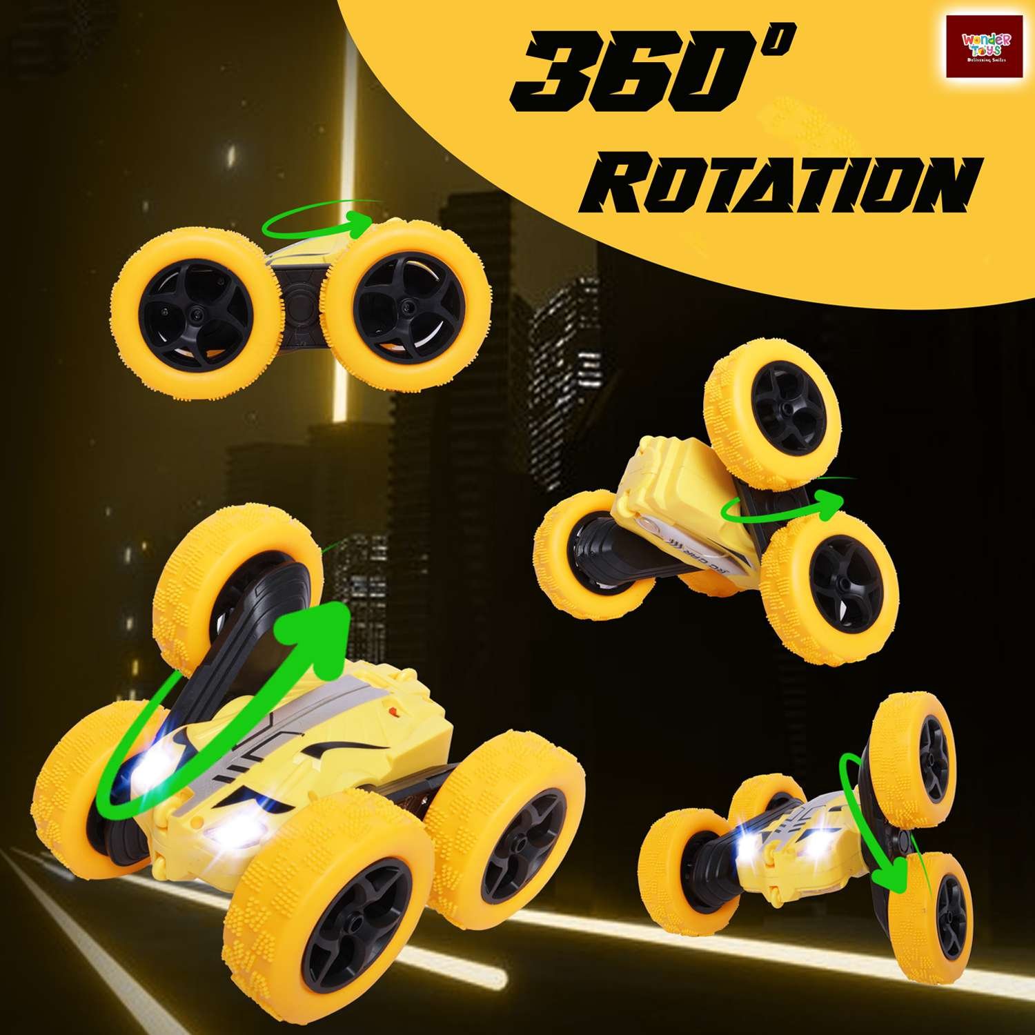 Remote Control Double Flip Stunt Toy Car 4 Wheels ( Yellow ) - Double Flip Stunt Car | Wonder Toys - MT-0624