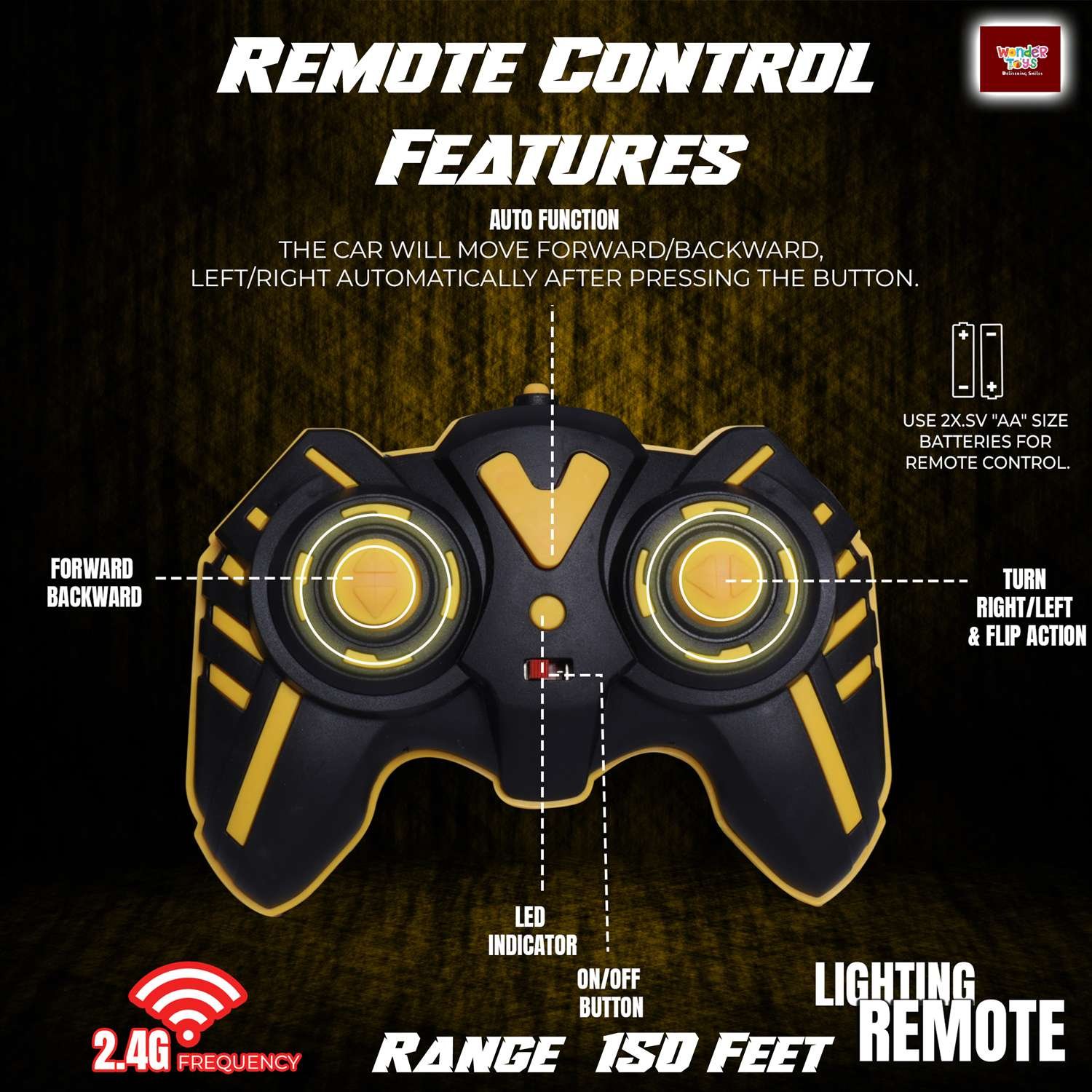 - 360° Spins & Double Flips – Perform stunts, rotations & flips with ease for nonstop fun., 2.4 GHz Remote – Strong signal, no interference, play multiple cars together up to 150 feet range.