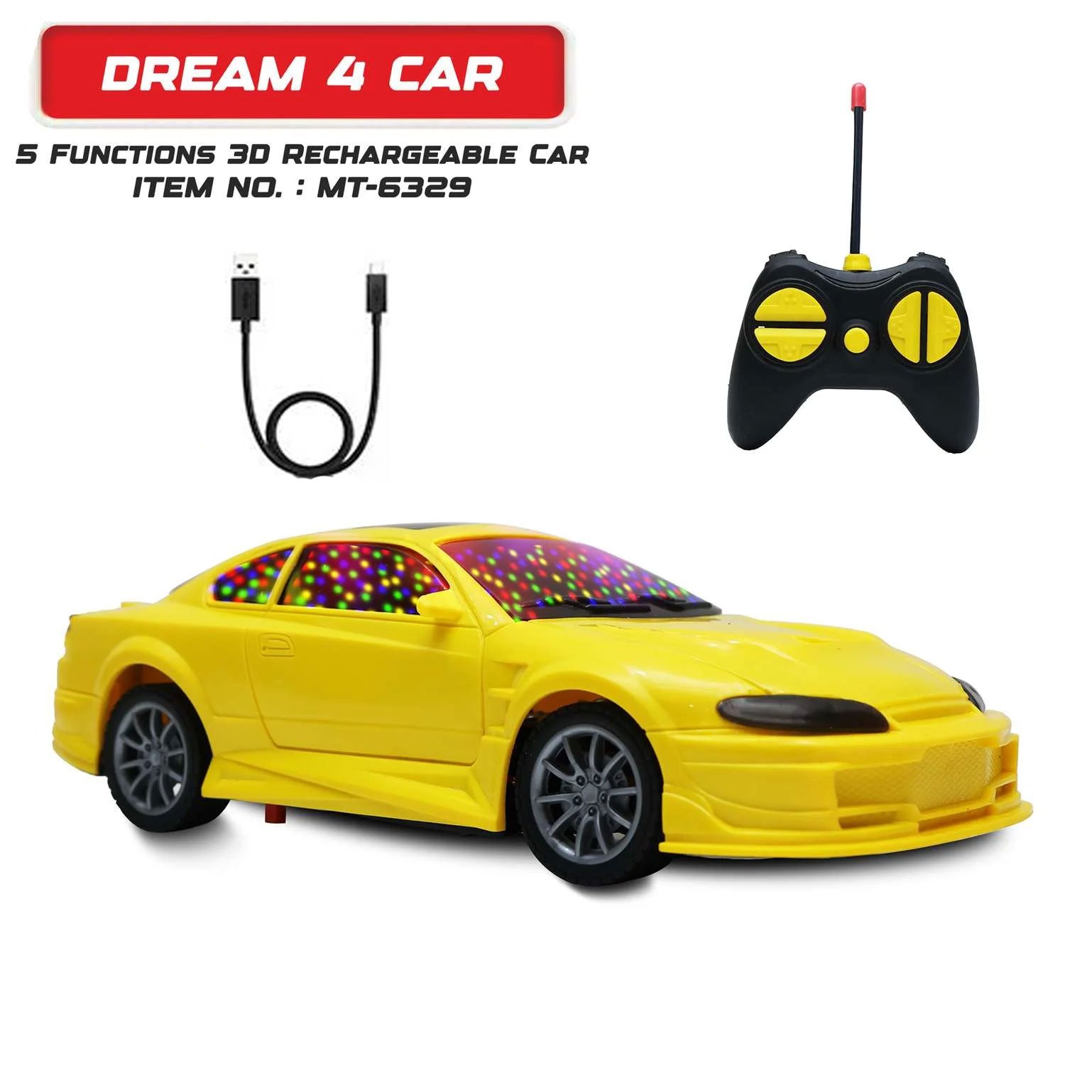 Dream 4 Car Yellow 5 Functions 3D Rechargeable Car – Remote Control Racing Car For Kids | Wonder Toys - MT-6329