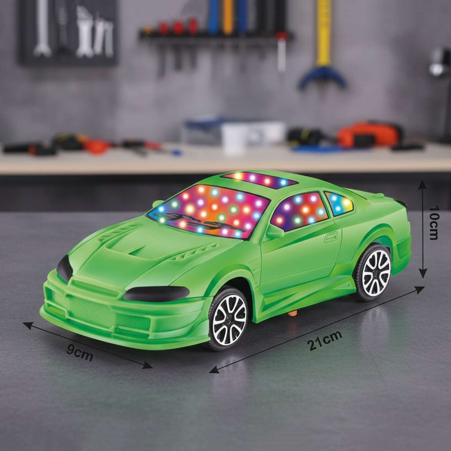 Vibrant LED lights make racing more exciting, especially in the dark.