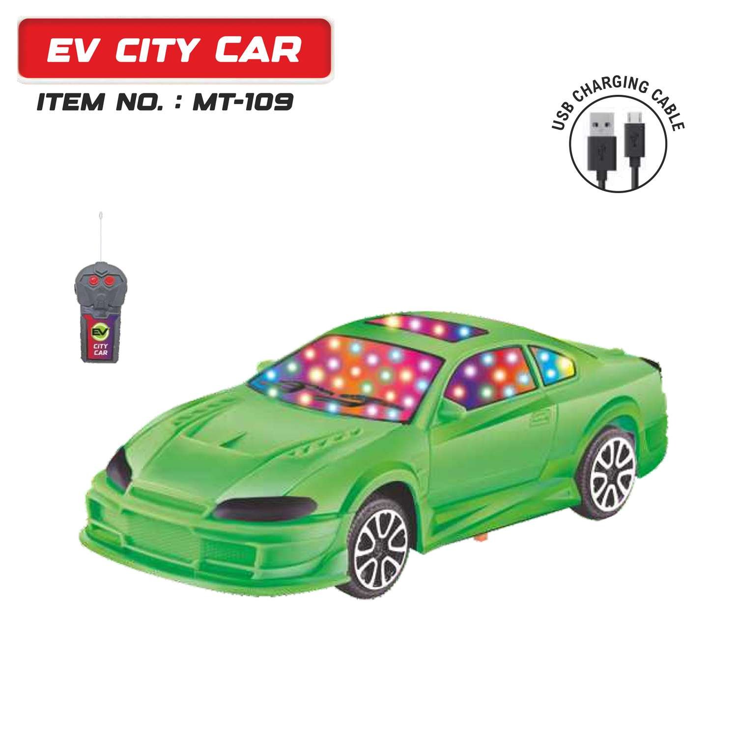 EV City Car 2 Functions Rechargeable 3D Remote Control Toy Car - EV Racing Toy Car for Kids I Wonder Toys - MT-109