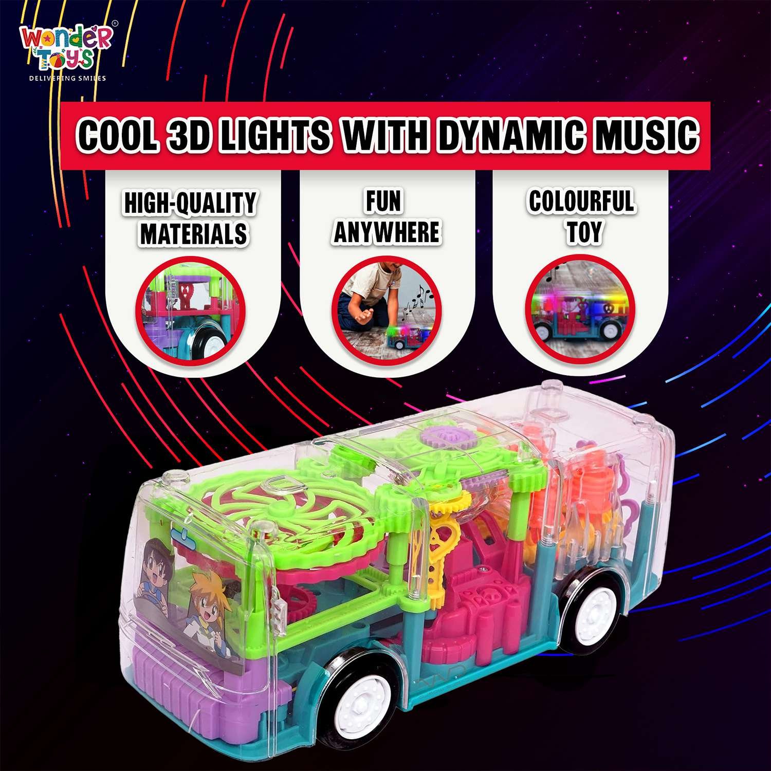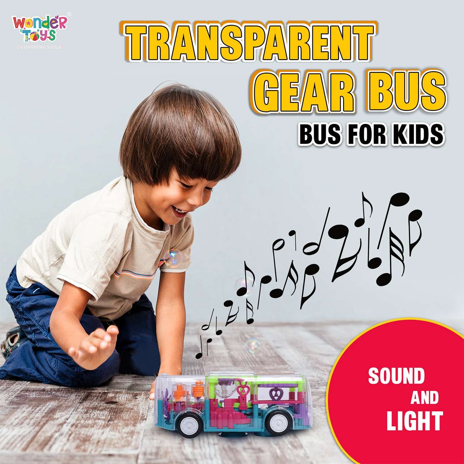 Gear Bus With Light & Sound – Kids Rechargeable & Remote Control Bus Toy For Kids - Wonder Toys - 388-55
