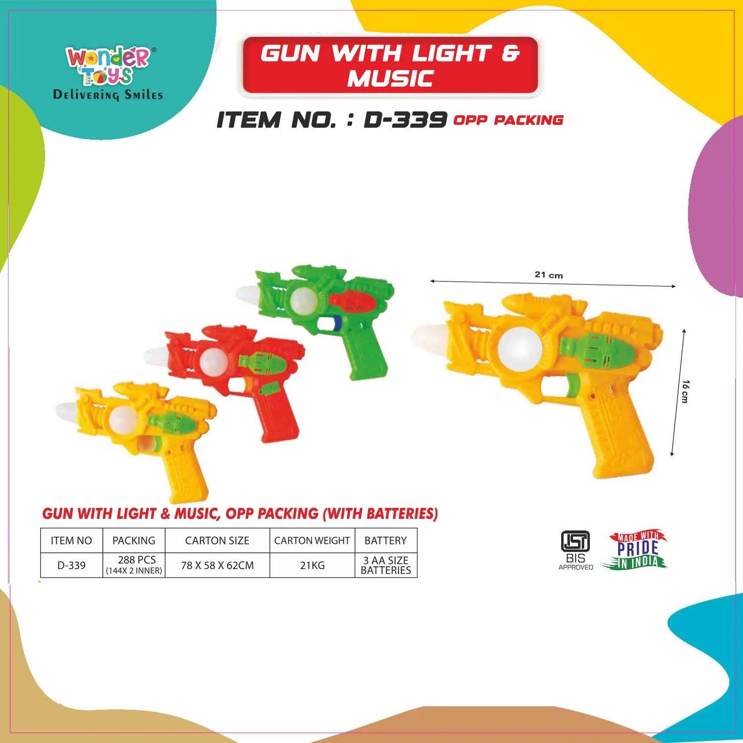 Gun with Light & Music – Musical Gun Toy For Kids - Wonder Toys - D-339