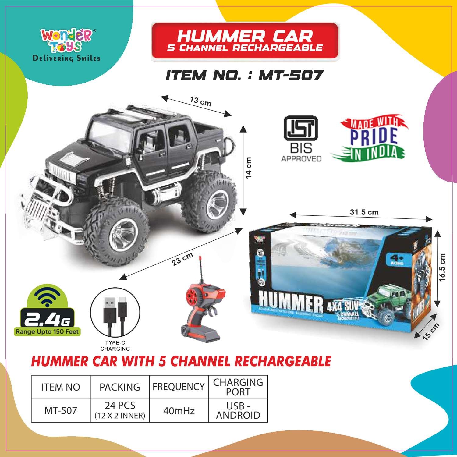 Hummer Car ( Black) with 5 Channel Rechargeable – Hummer Off Road Diecast Car Toy | Wonder Toys - MT-507