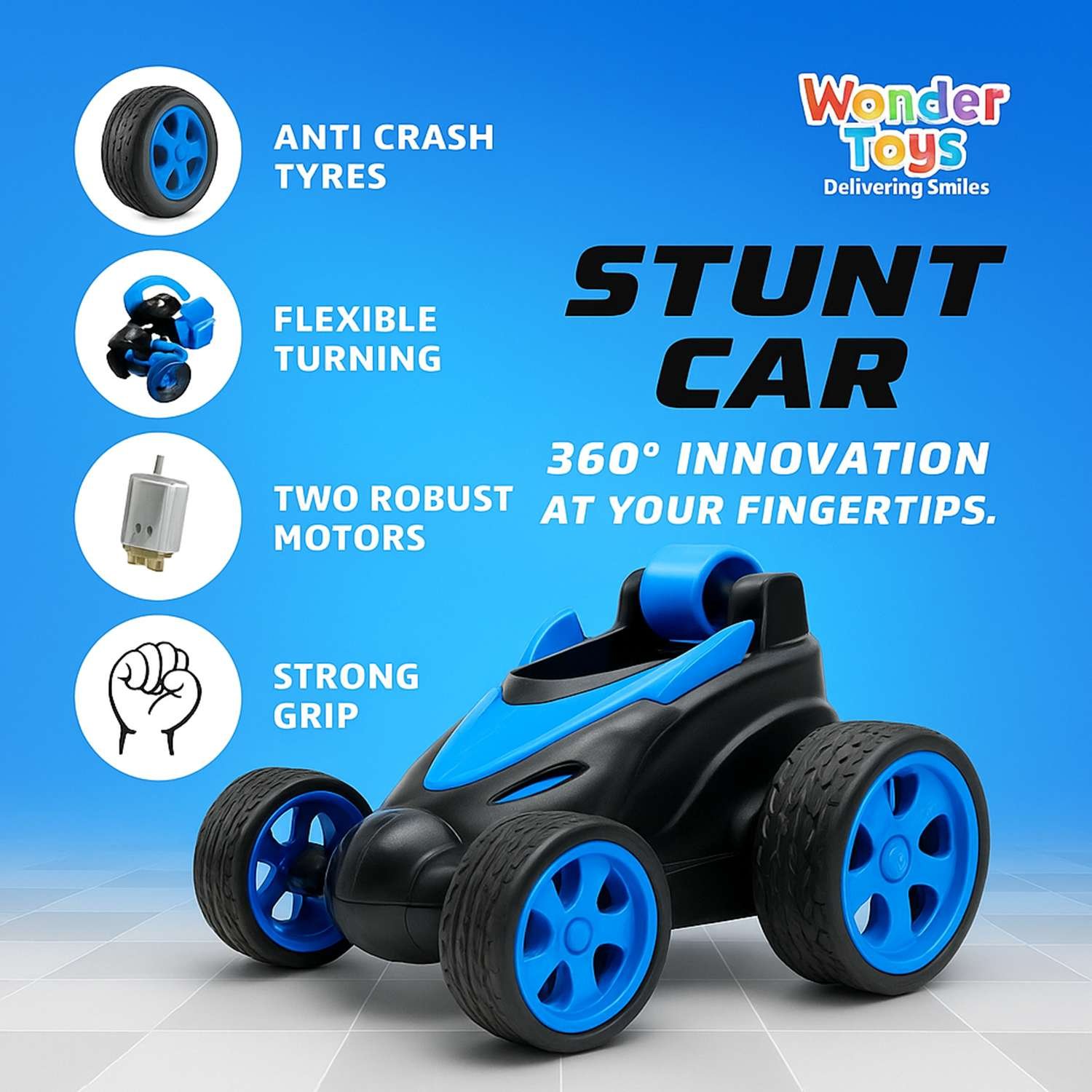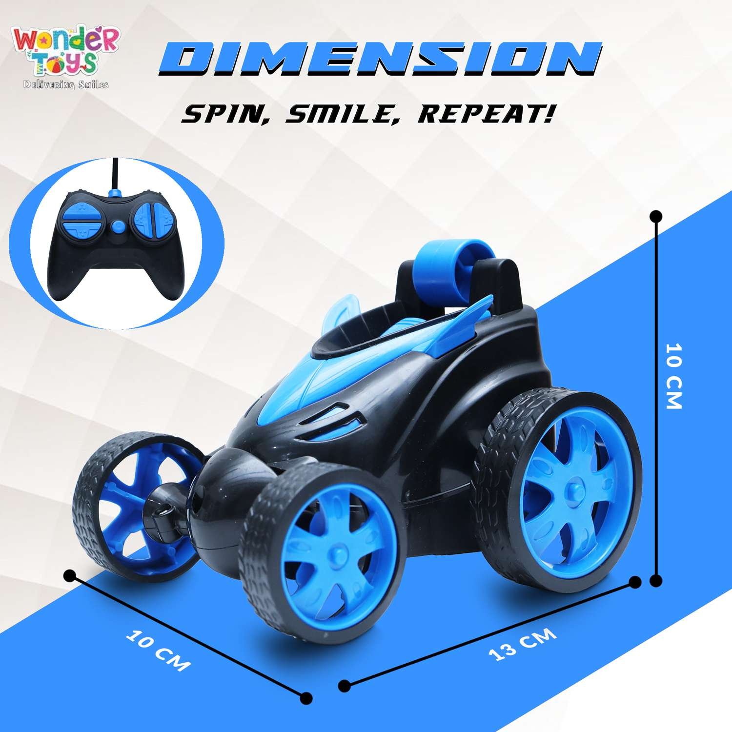 Mini Stunt Car Blue – Compact 360° Flip RC Toy Car for Kids | Wonder Toys - MT-368