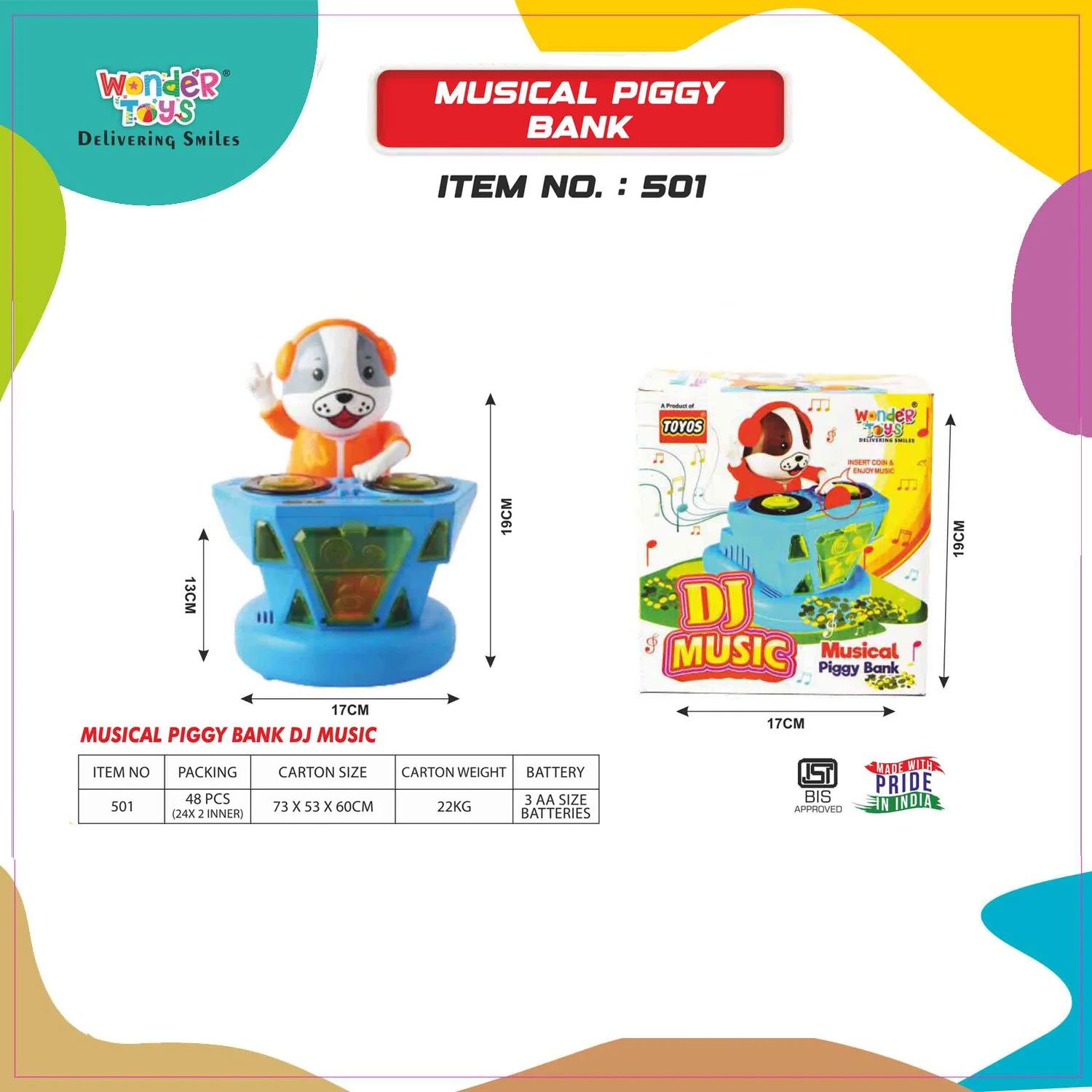 The Musical Piggy Bank is suitable for children aged 3 years and above and makes a perfect gift for birthdays, festivals, or educational playtime. It can also be used as a decorative piece in a child’s room. Wonder Toys focuses on combining fun with education, and this toy is a great example of that philosophy. Whether you want to encourage good saving habits or simply delight your child with a musical surprise, the Musical Piggy Bank is a must-have addition to your toy collection.
