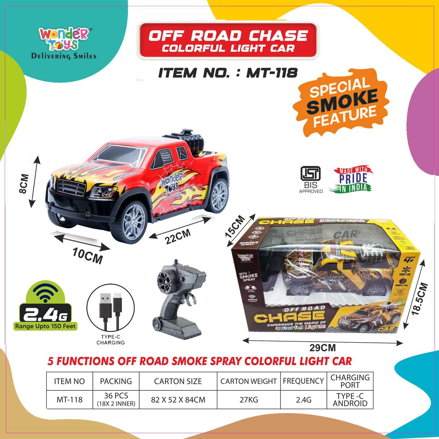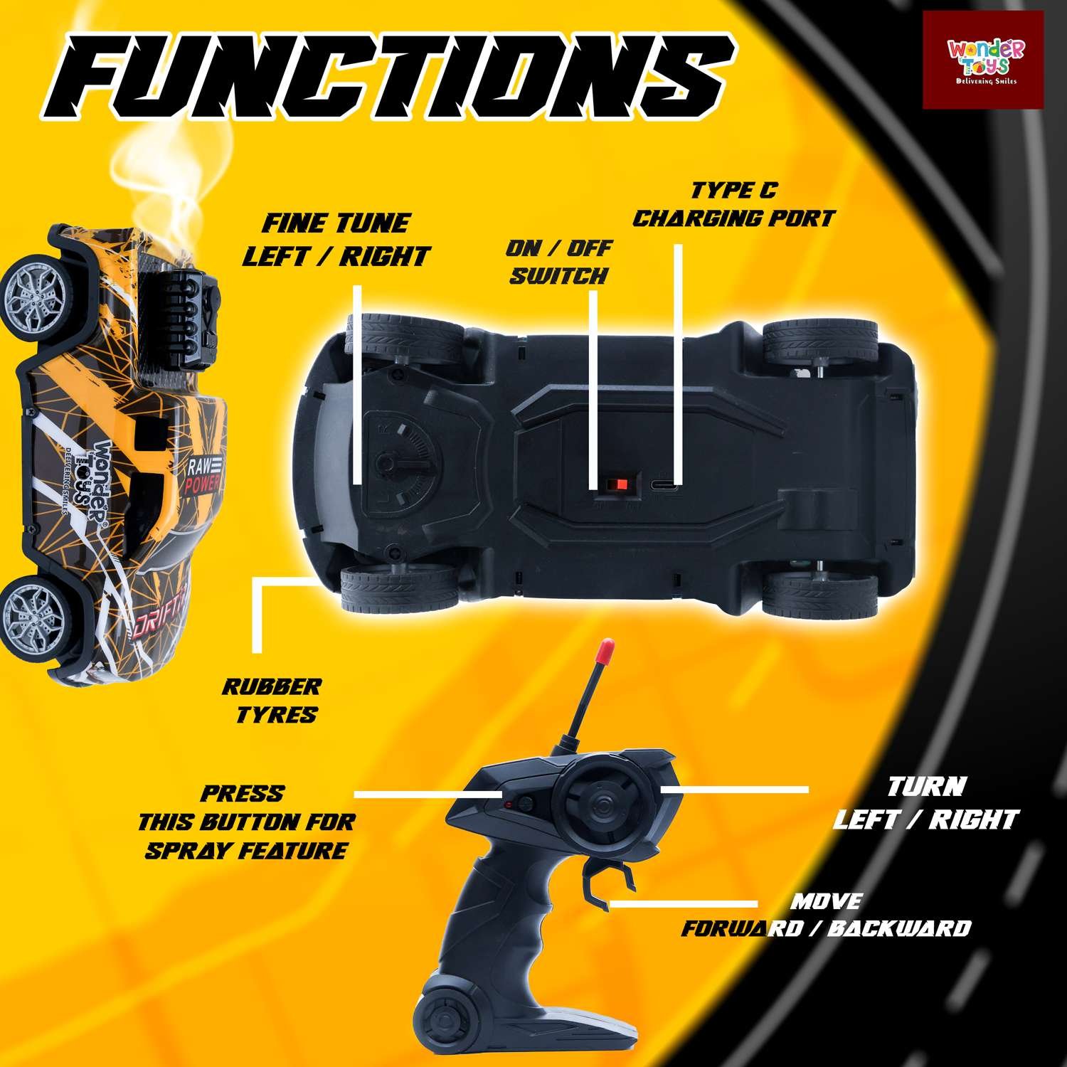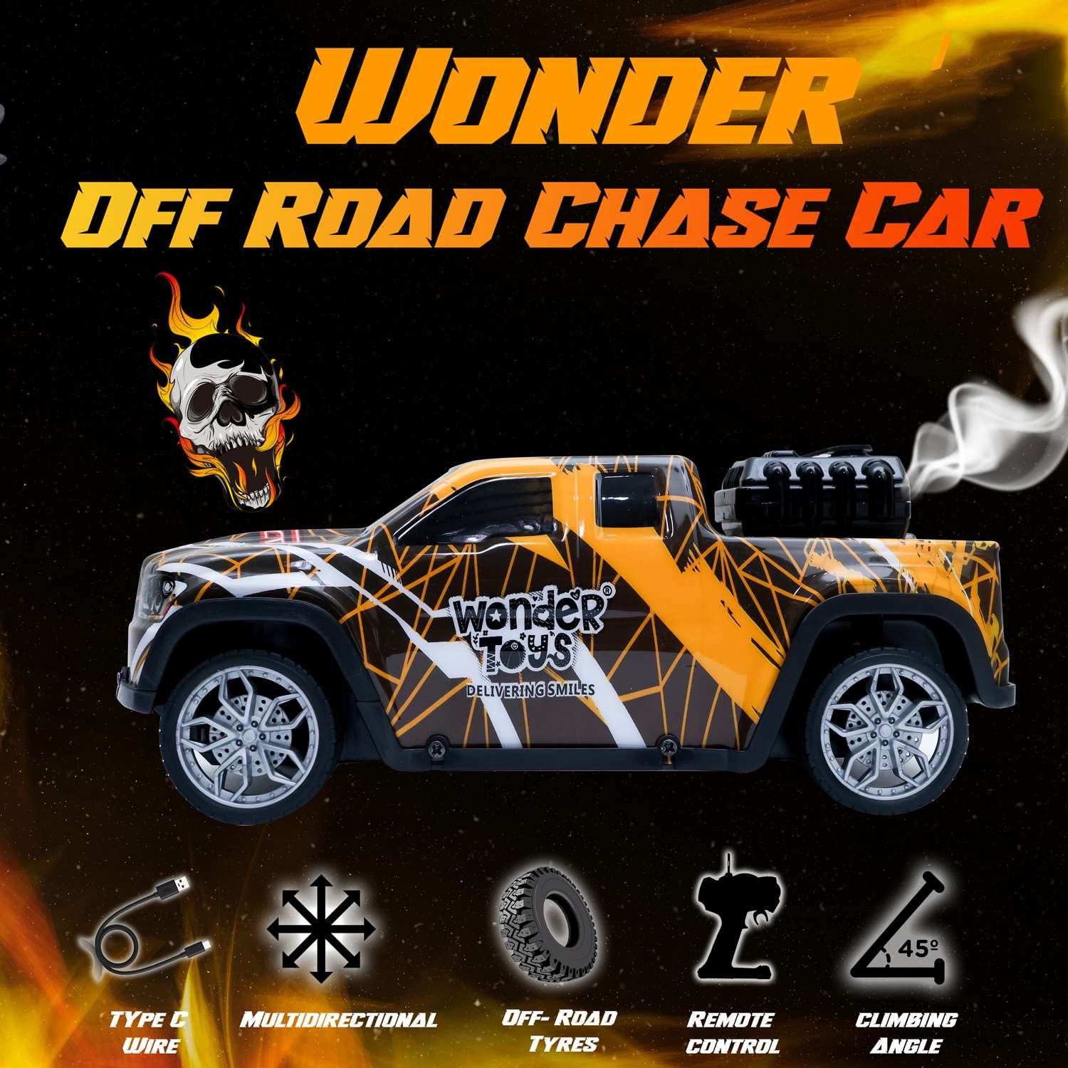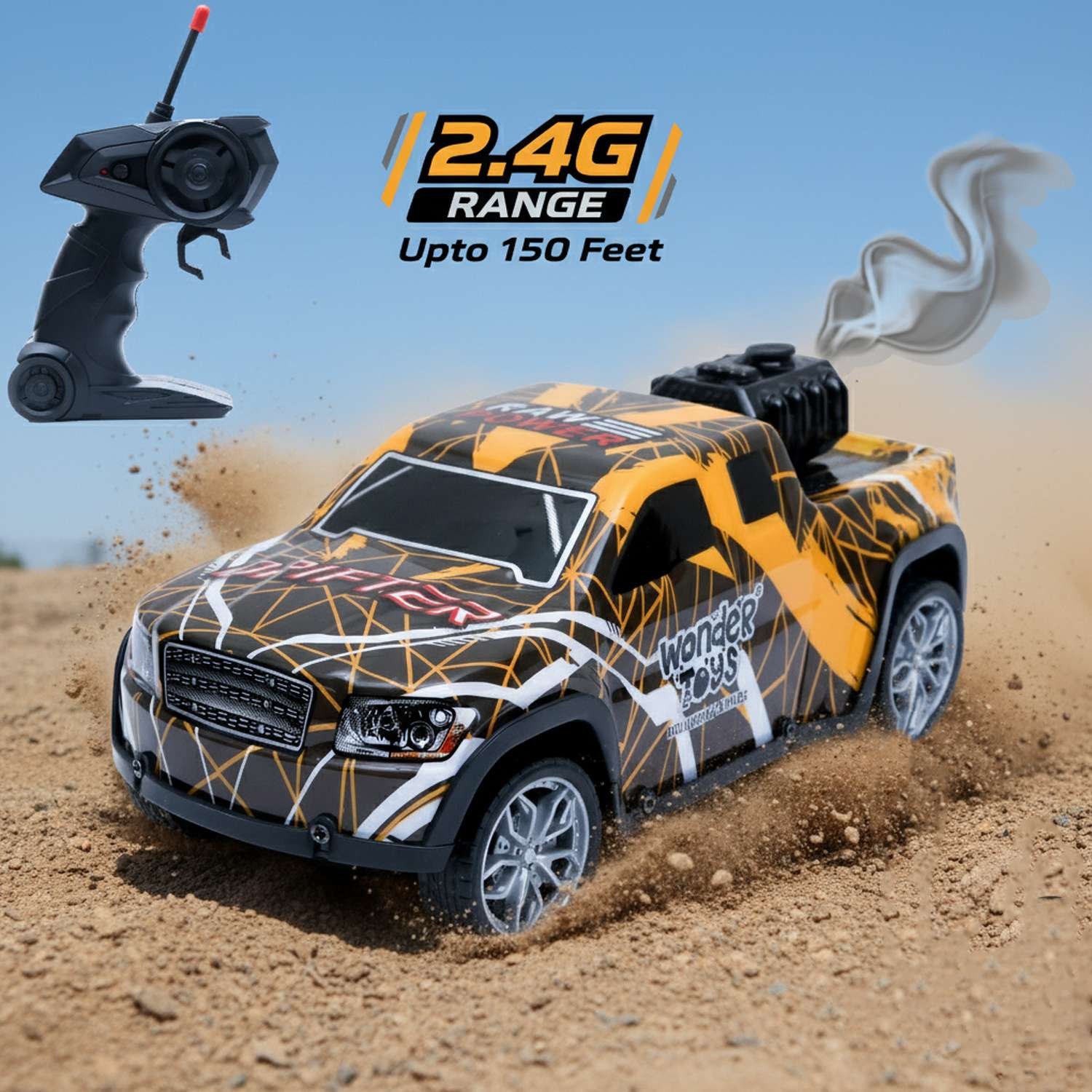 Off Road Smoke Spray Colorful Light Car Yellow – Remote Control Adventure Toy | Wonder Toys - MT-118