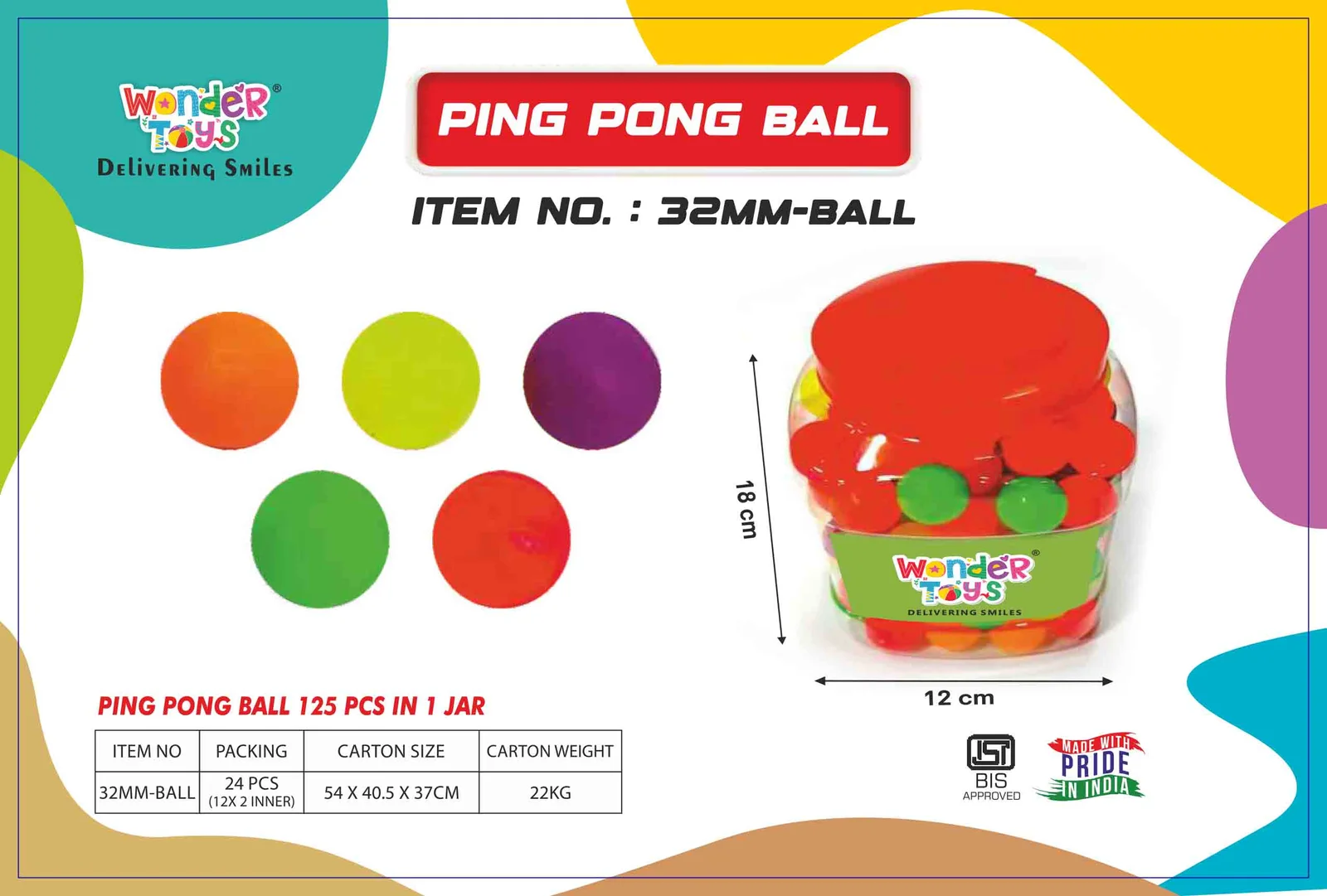 Ping Pong Ball 125 Pcs Online – Colorful Bounce Ball For Kids & Adults- Wonder Toys - 32MM