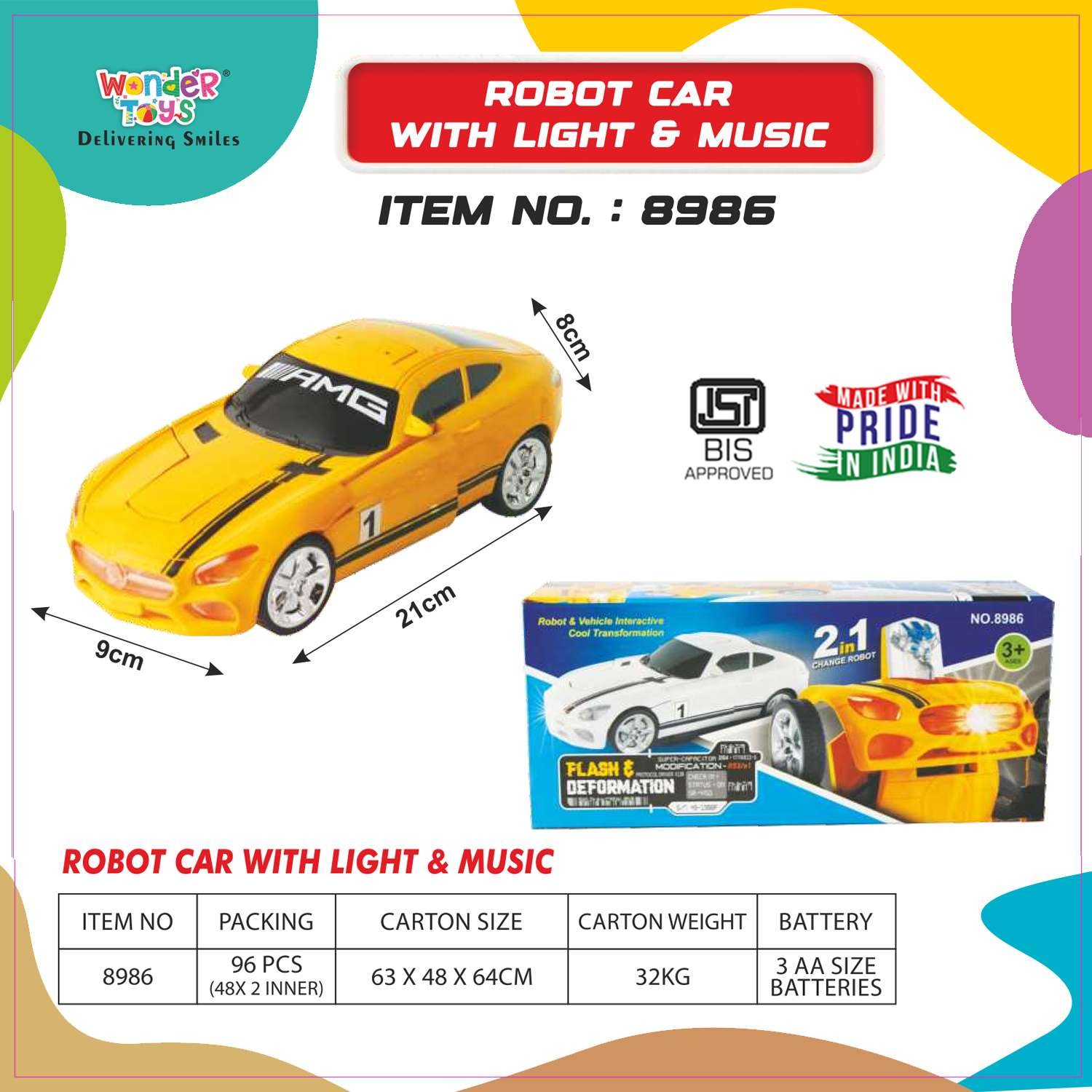 Delivered on 27 December at .The Robot Car With Light & Music by Wonder Toys is an interactive toy designed to captivate children with its transforming abilities, vibrant lights, and engaging musical effects. This unique toy allows kids to switch the robot car between different modes, enhancing imaginative play and interactive learning.