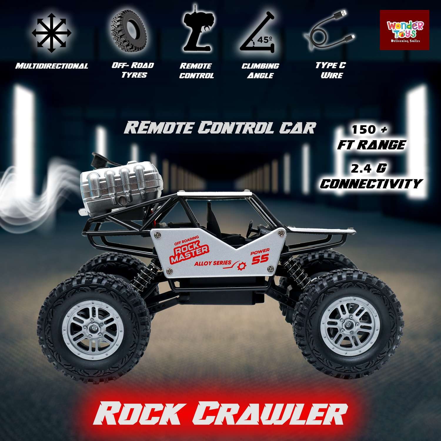 Remote Control Rock Crawler Toy Car With Spray ( Silver ) – Rock Climbing RC Car for Kids | Wonder Toys - MT-8311