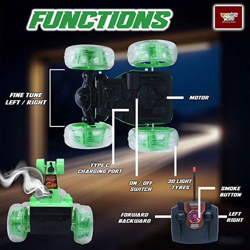 Order Your High-Speed Stunt Car (Green) with Smoke Spray