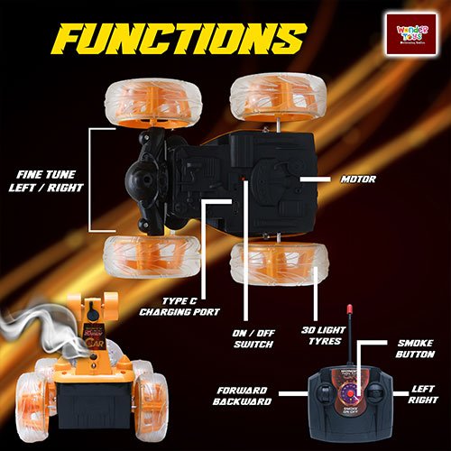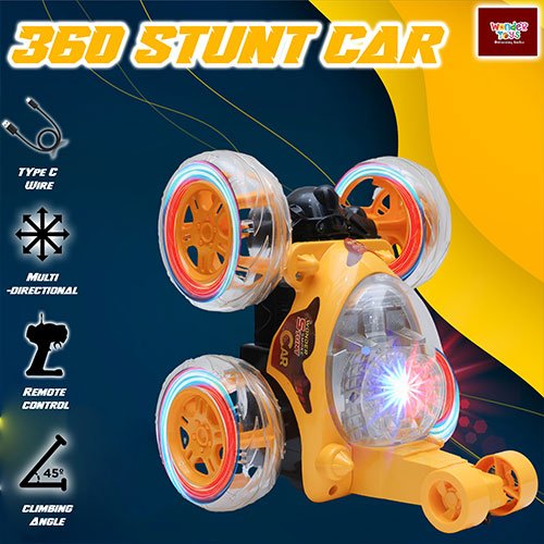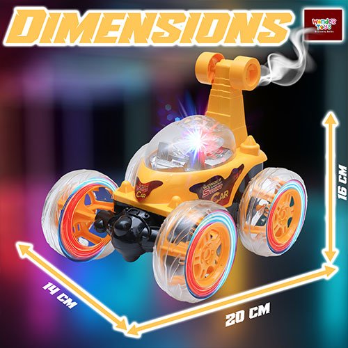 Experience heart-pounding excitement with the High-Speed Stunt Car (Yellow) with Smoke Spray Stunt from Wonder Toys. Designed for both kids and adults who crave adventure, this remote control car delivers unmatched performance with its 360° rotating stunts, high-speed acceleration, and realistic smoke spray effects. Crafted with durable alloy construction, it ensures long-lasting fun while tackling any surface, from smooth floors to rugged terrains. The Type-C fast charging system guarantees your car is ready to roar in minutes, minimizing downtime and maximizing thrill. Perfect for indoor and outdoor use, this stunt car not only entertains but also improves hand-eye coordination, reflexes, and strategic thinking in young enthusiasts.