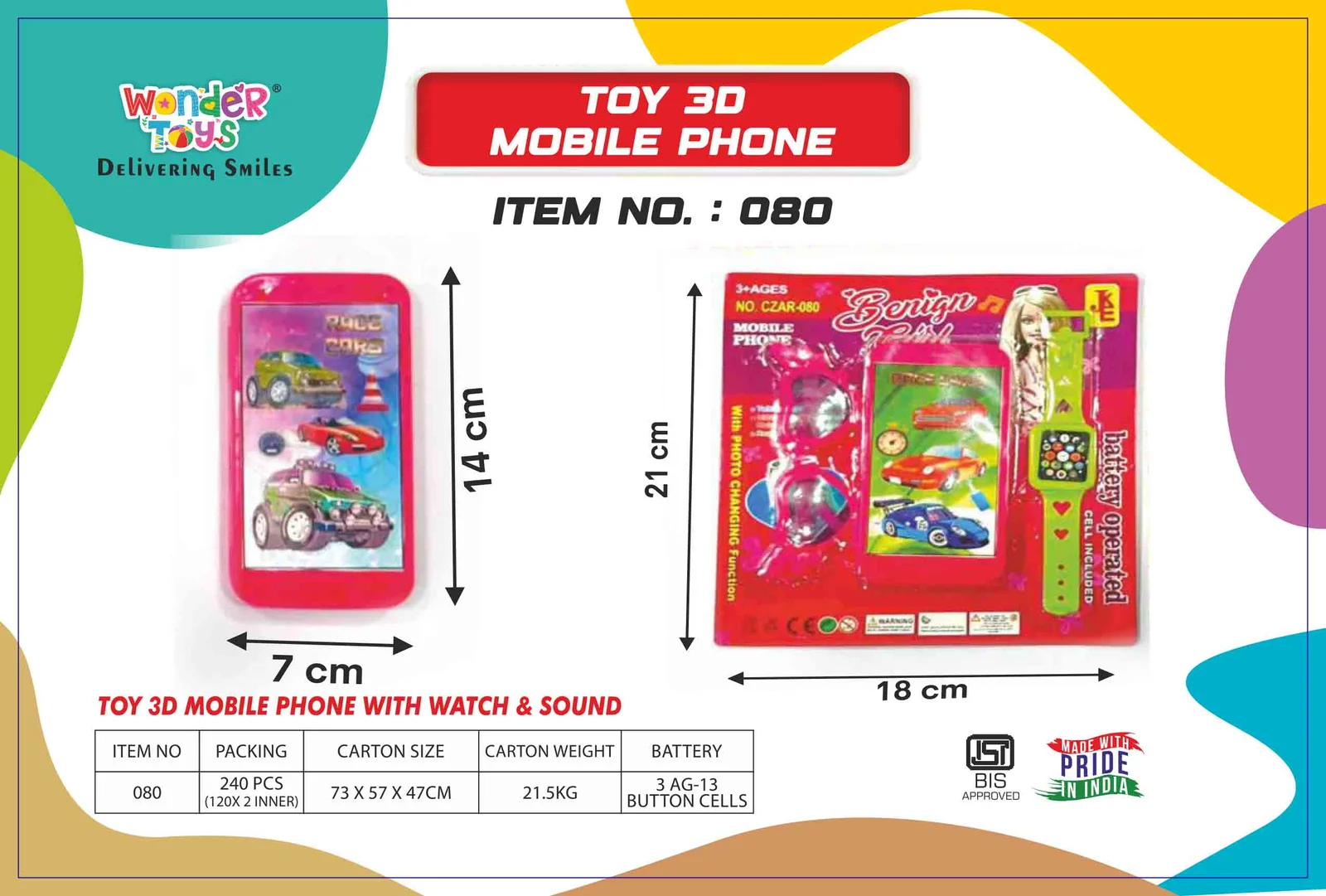 Delivered on 27 December at .The Toy 3D Mobile Phone is an exciting, interactive toy that blends entertainment with early learning for children. Designed for toddlers and young kids, it features vibrant 3D effects, colorful buttons, lights, and engaging sounds that stimulate both visual and auditory senses. At Wonder Toys, each Toddler Music Toy Phone is made from safe, non-toxic, and durable materials to ensure long-lasting fun.