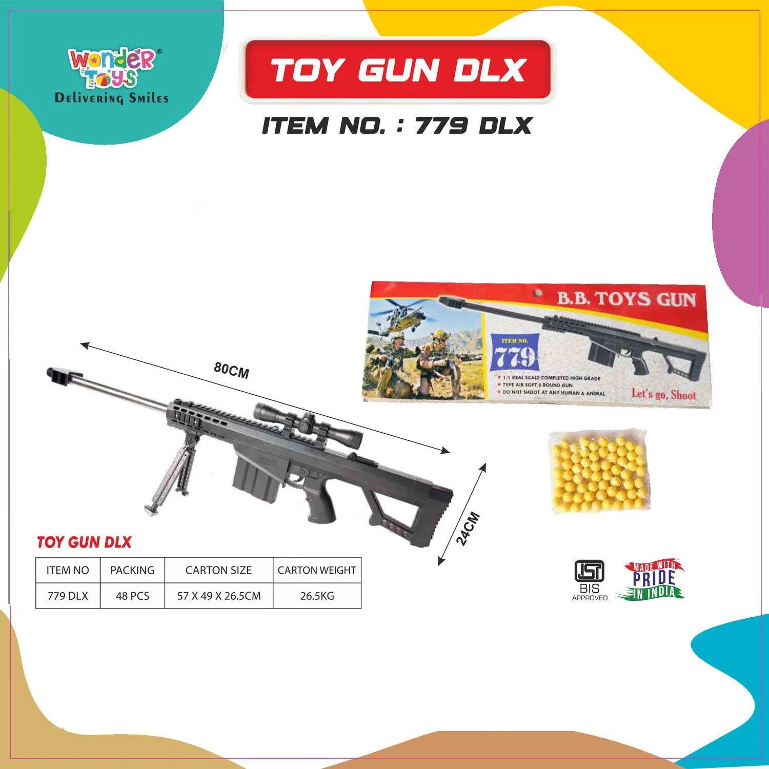 Delivered on 14 February at .Order your Riffle Toy Gun now! Shop top-quality, safe, and fun toy guns for kids. Buy now and enjoy endless playtime adventures! Make playtime exciting with the Toy Gun Dlx from Wonder Toys, a toy designed to engage children in creative and interactive play. With bright LED lights, fun sound effects, and a comfortable grip, the Toy Gun Dlx provides an immersive experience for young kids. Its high-quality, non-toxic construction ensures durability and safety, allowing kids to play confidently for hours.