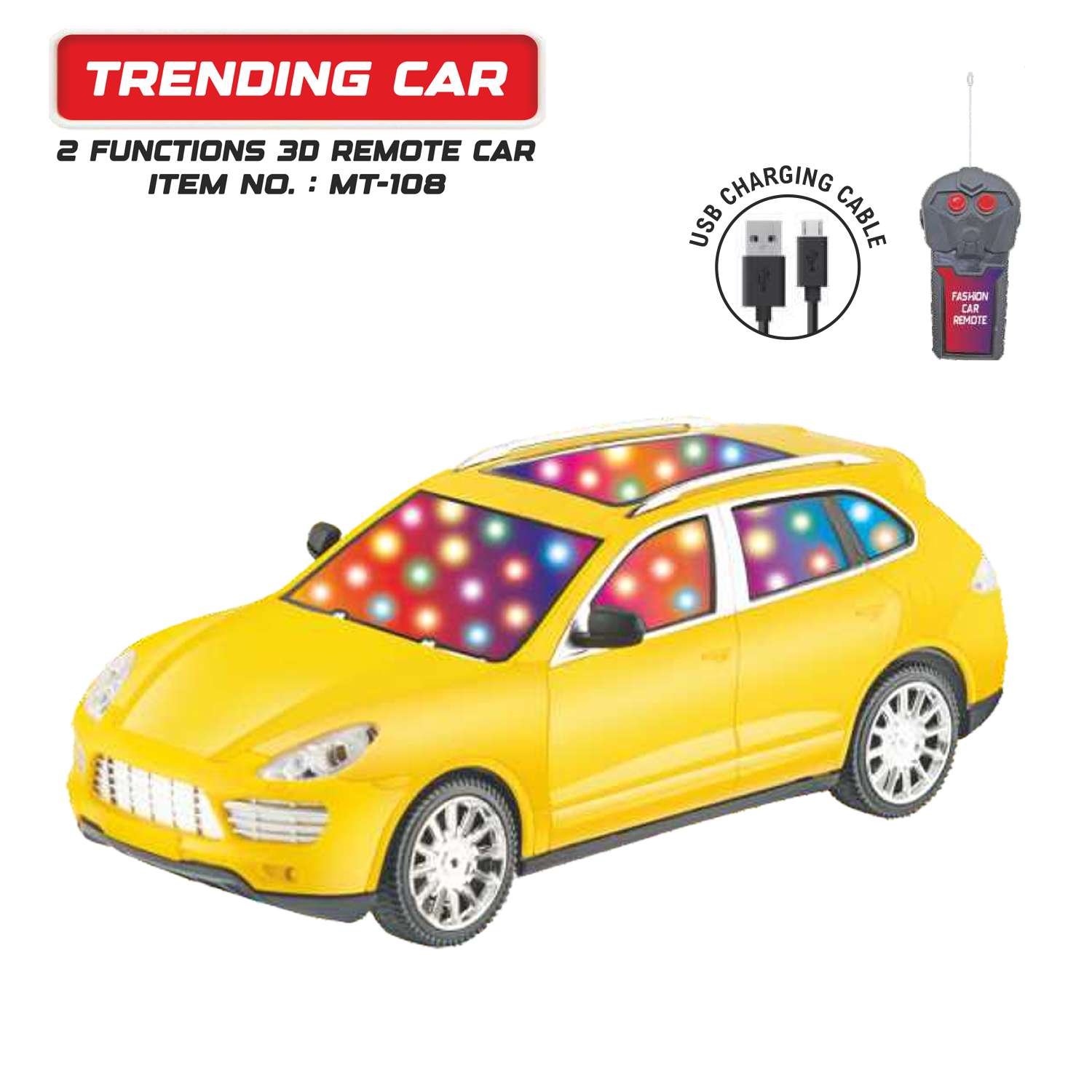 Trending Car 2 Functions 3D Remote Control Car – Rechargeable Vehicle Toy Car - Wonder Toys - MT-108
