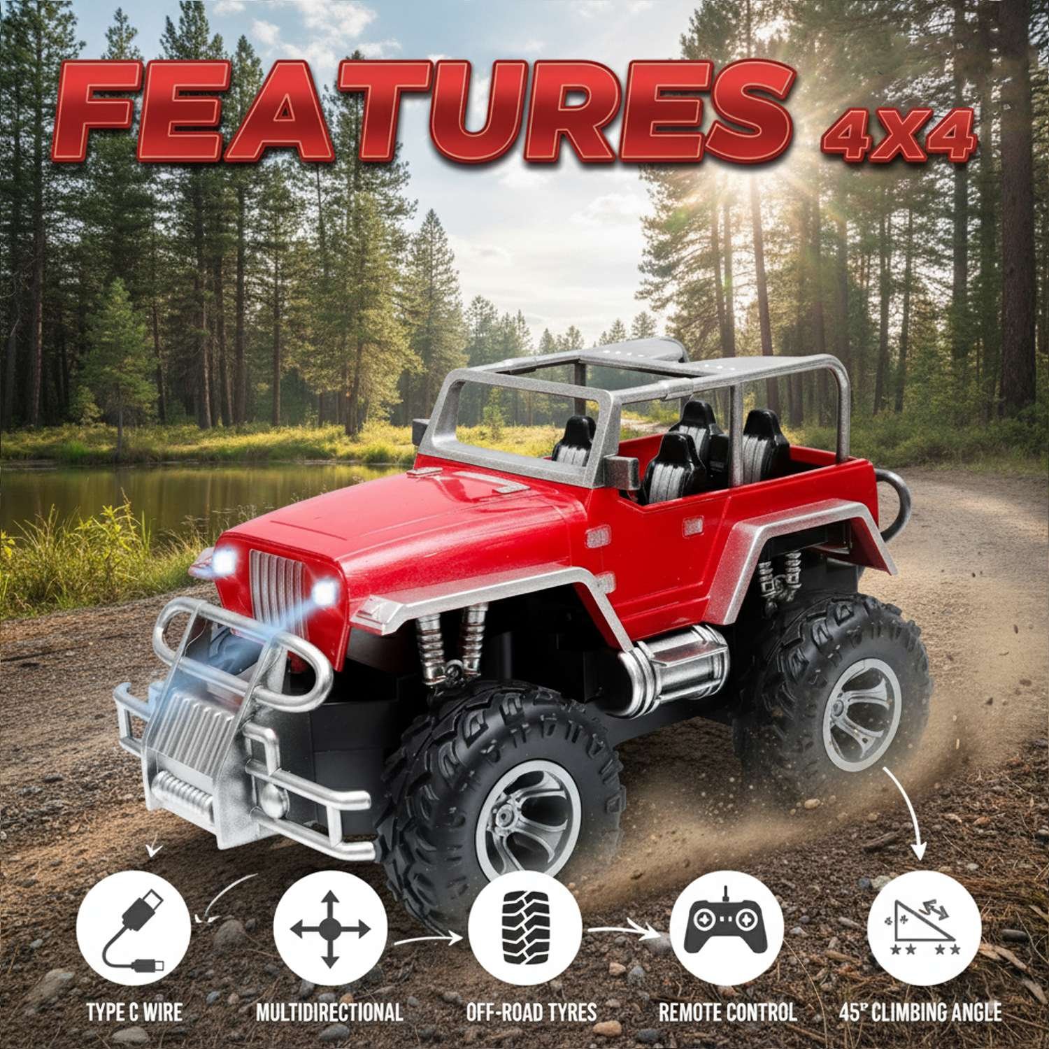 Delivered on 19 December at .Unleash the racer in your child with the Xtreme Racer ( Red ) 360° Flip Stunt Car by Dang Trading Company Private Limited (Wonder Toys) — designed for non-stop fun and adventure. This remote control racing car delivers high-speed performance with 5-channel precision control, making it perfect for kids who love speed and excitement. Built with a sturdy body and advanced suspension system, it glides effortlessly on any surface — be it smooth floors or rugged outdoors. The 360-degree flipping action, vibrant LED lights, and eye-catching design make every race an electrifying experience!